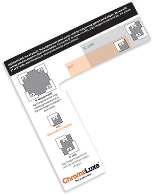 ChromaLuxe Connections L-Jig for the Hanging System. 6.5" x 6.5". This jig is used to show where to attach the Hanging mounts (U4698, sold separately) to the backs of the aluminum panels that make up the larger murals.